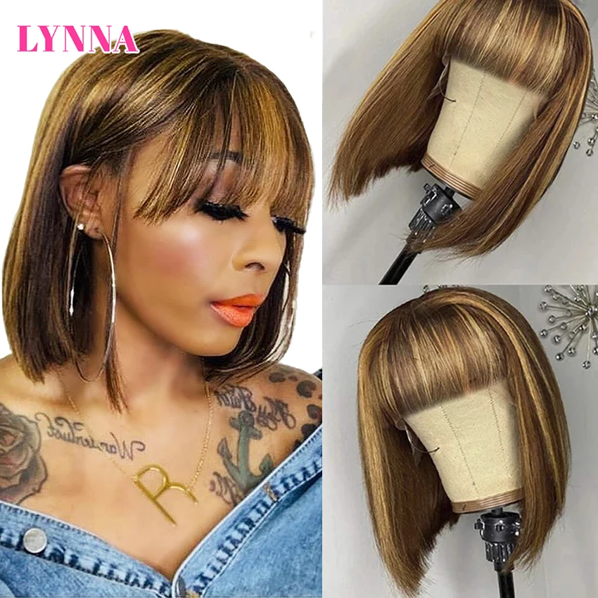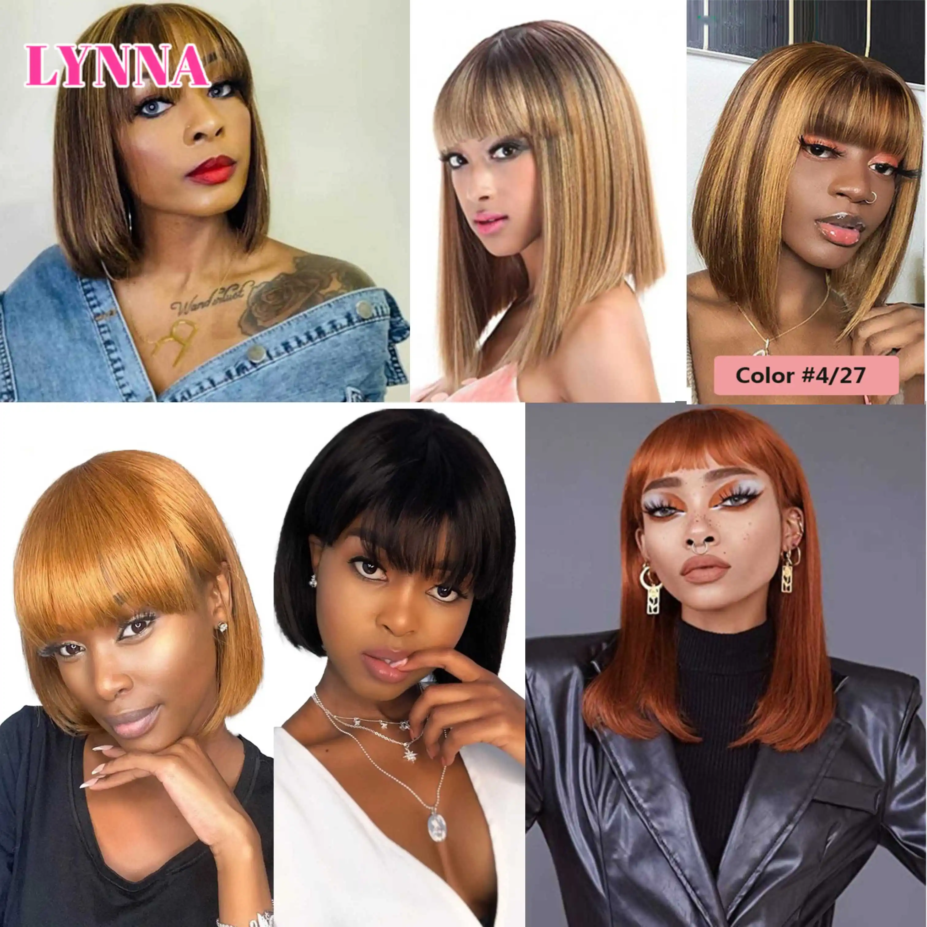 Прямой парик с челкой хайлайтер Боб, парики из человеческих волос ручной работы, короткий парик из человеческих волос Боб Омбре, дешевый парик для чернокожих женщин