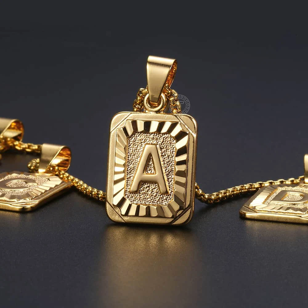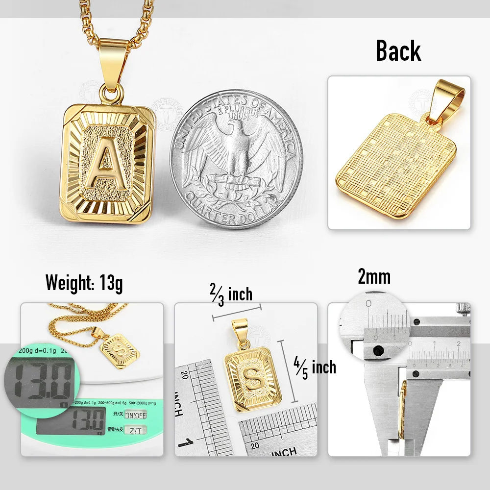 Ожерелье с подвеской в виде букв, золотого цвета, квадратное, A-Z, 26 дюймов, GPM05B