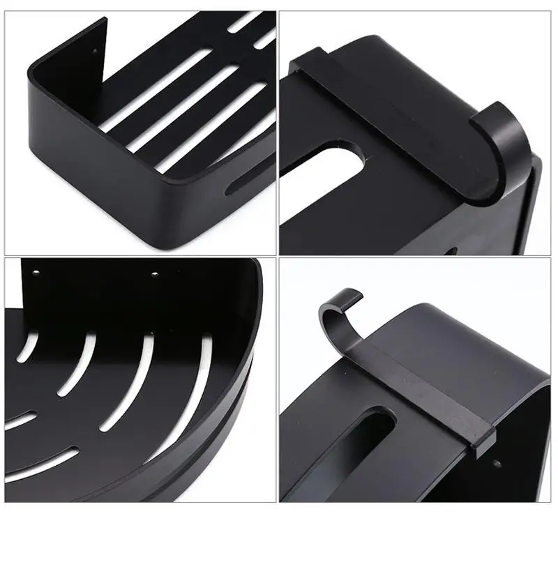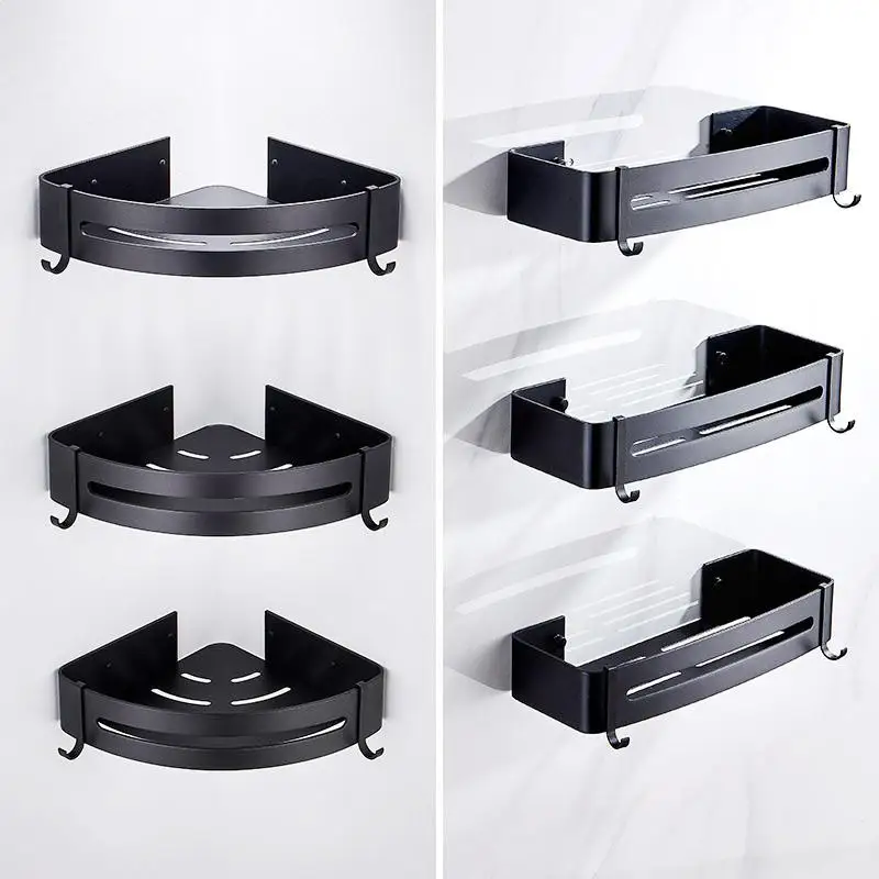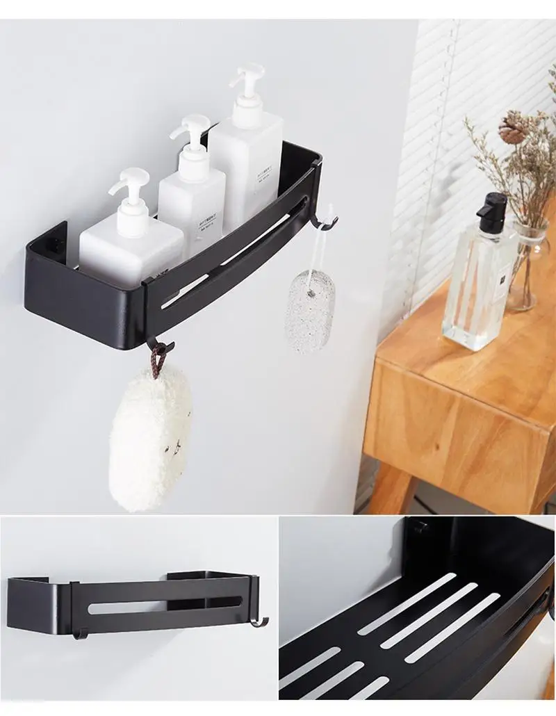 Полка для ванной комнаты, душевая стойка для хранения, черные угловые полки, Настенный алюминиевый держатель для туалетного шампуня без дрели