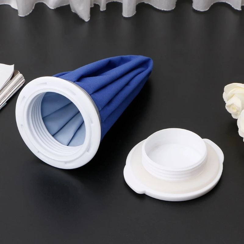 Простой в использовании, для упаковки льда снимите колпачок, затем заполните кубиками льда, измельченным льдом или водой. Смочите мешок в холодной воде, чтобы избежать прилипания к телу