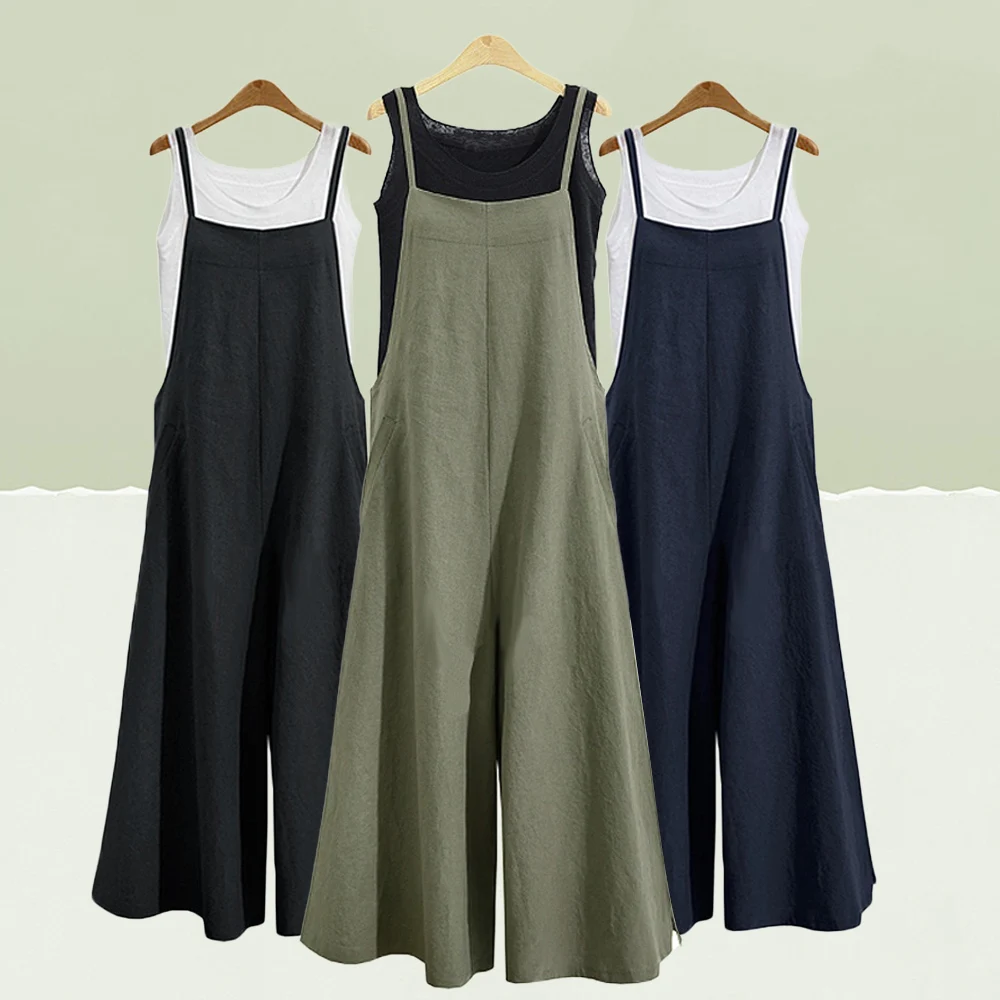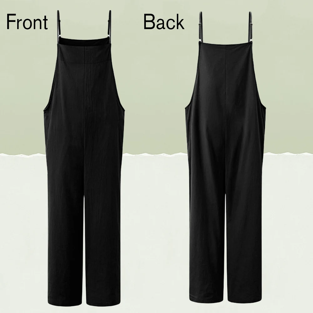 Комбинезон женский без рукавов с широкими штанинами, однотонный свободный Ромпер, повседневные Комбинезон широкие брюки на подтяжках брюки на лето, размера плюс