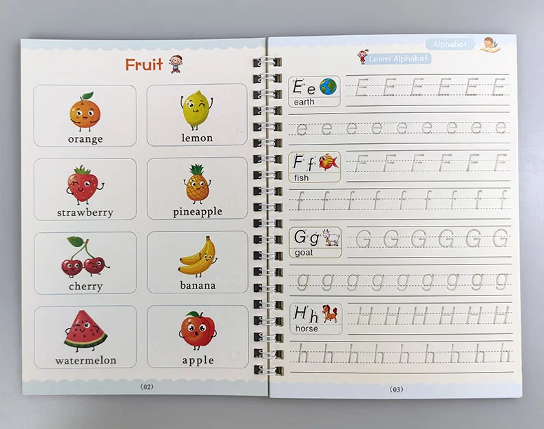 Интересная тетрадь для обучения письму ( печатные буквы) на английском языке. На левой стороне- слова по темам ( Еда, Семья, Тело и т.д.), на другой- трафаретные буквы, их предлагается обвести. В комплекте- ручка с запасными стержнями и насадка- рыбка для правильного захвата ручки. Посылка пришла очень быстро. К сожалению, я, видимо, упустила из виду, что нет красочных букв ( ради них и покупалось), но и так приспособим. С продавцом не общались, не надо было.