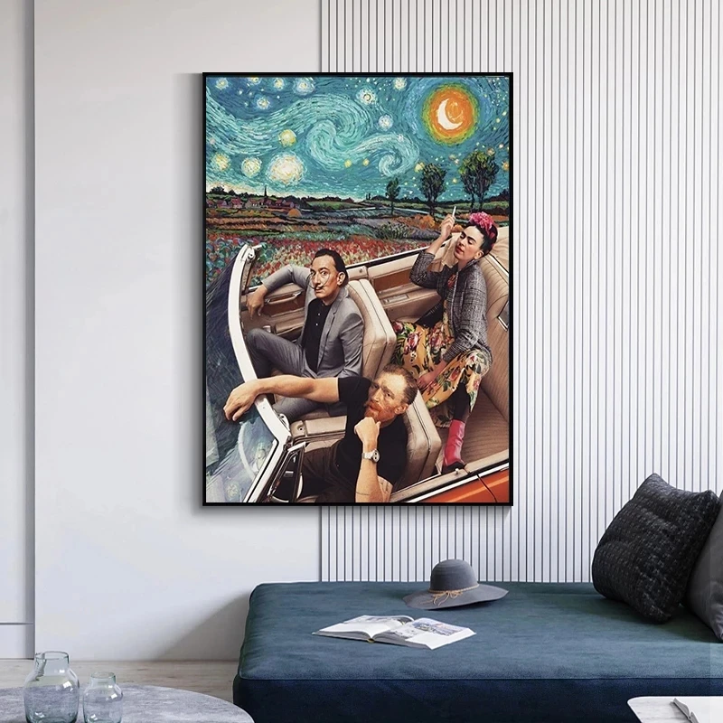 Смешные художественные голубые Звездные постеры Ван Гога для вождения и искусственные настенные картины для декора гостиной