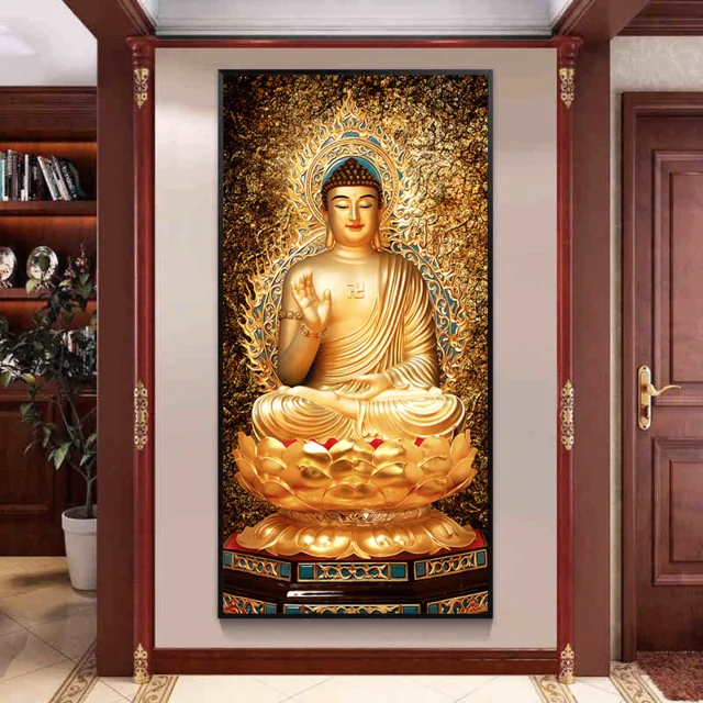 Золотая картина Будда на холсте, современное настенное искусство, картины для дома, гостиной, Декор, большой размер