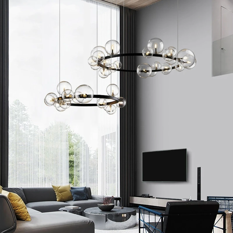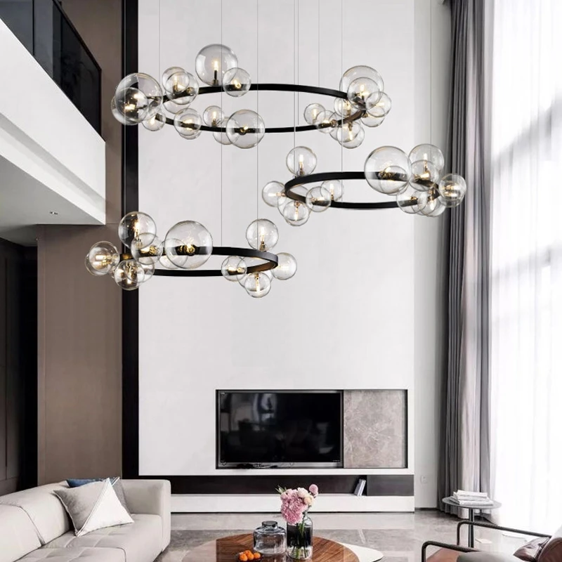 Люстра в виде прозрачного стеклянного шара, Современная продолговатая черная люстра, декоративное освещение для гостиной и столовой