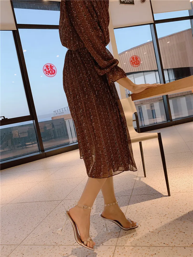 Женские босоножки на шпильке, прозрачные босоножки на высоком каблу...