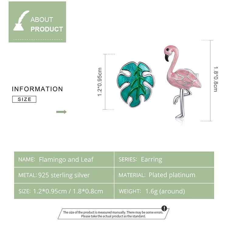 Серебряные серьги bamoer с фламинго и листьями, 100% Серебро 925 пр...