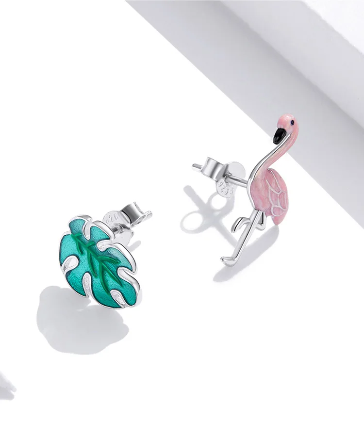 Женские серьги-гвоздики в виде фламинго и листьев, из серебра 925 п...
