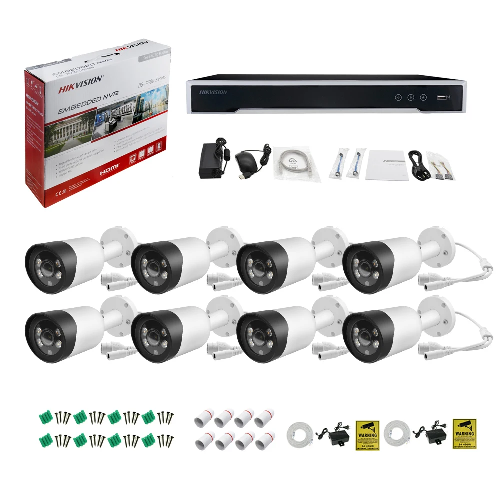 Совместимые с Hikvision комплекты DS-7616NI-Q216P 16POE NVR 8 Мп полноцветная IP-камера Bullet POE Встроенный микрофон 8 шт. подключений система видеонаблюдения