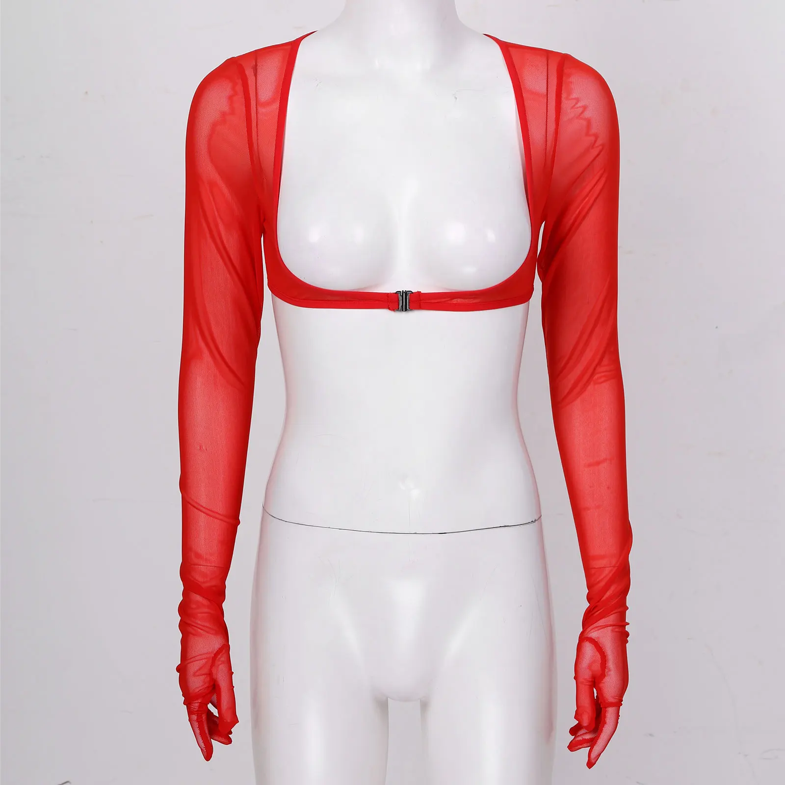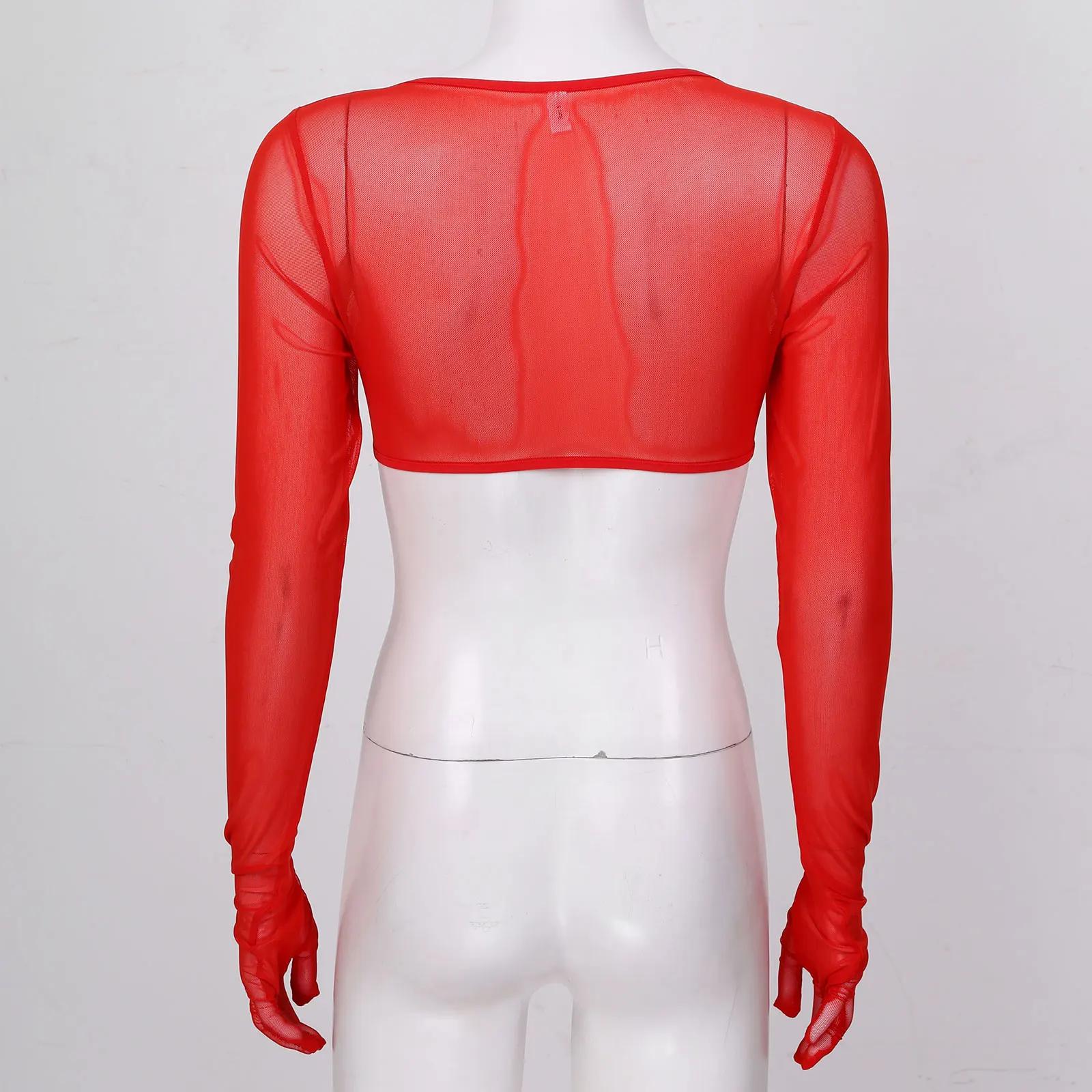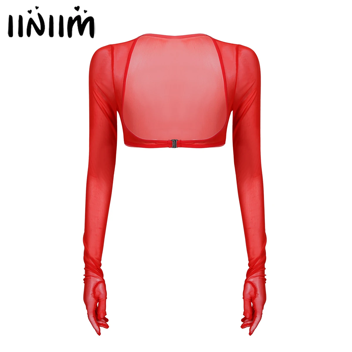 Женские прозрачные сетчатые перчатки iiniim, укороченный Топ с длинным рукавом и открытой пряжкой спереди для клуба, для лета
