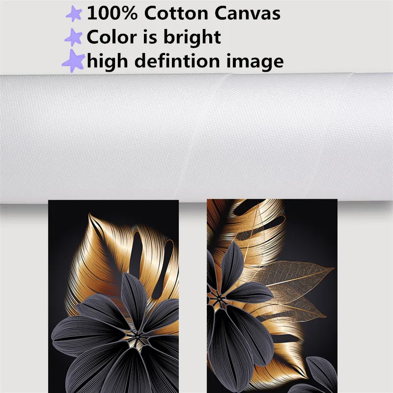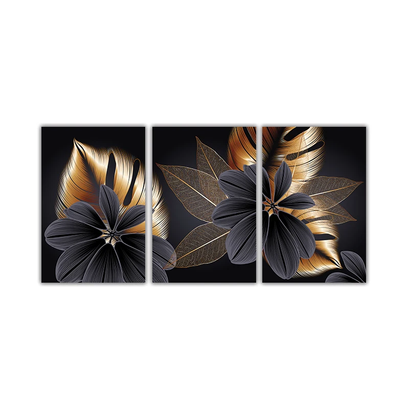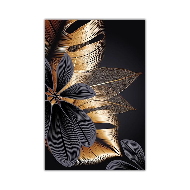Nordic Роскошный цветокзеленогочерногоМедь Холст Картина без рамки со стеной из живых растений Золотой плакат абстрактного искусства домашний декор