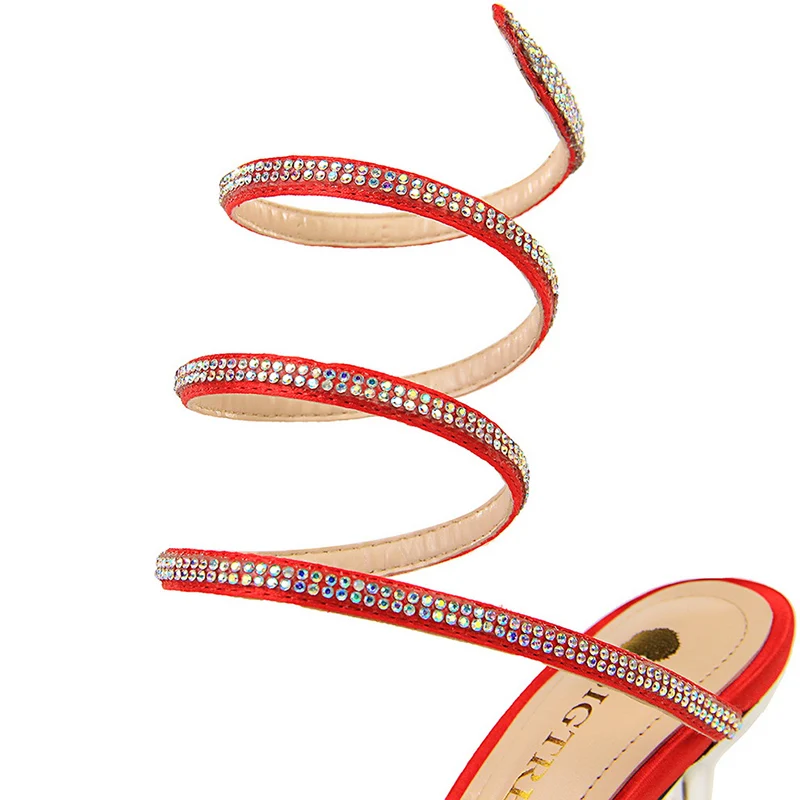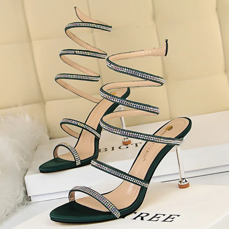 2021 г., летние роскошные женские босоножки для ночного клуба на тонком высоком каблуке 8 см зеленые и красные римские сандалии на шпильке с блестками обувь для выпускного