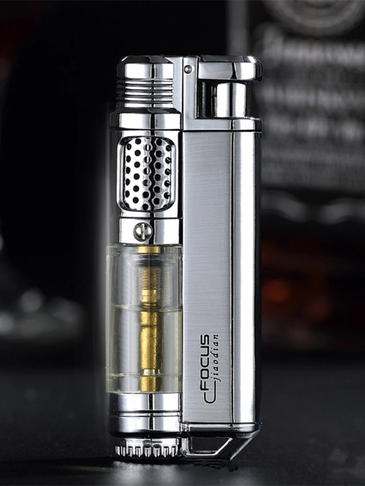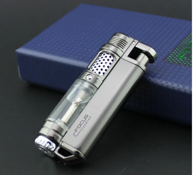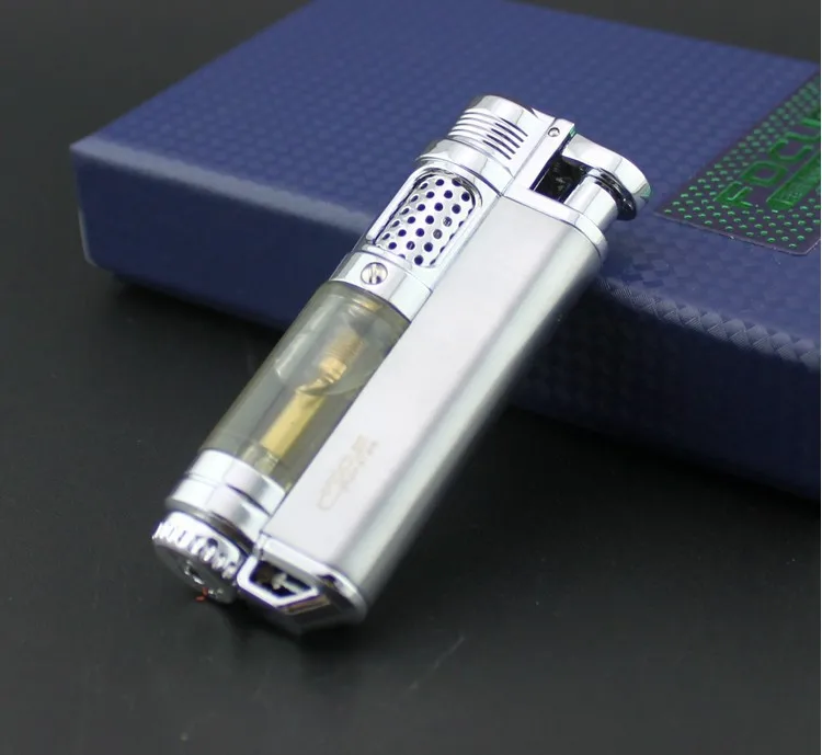 Зажигалка для сигар с видимым газовым окошком, струйная Бутановая металлическая турбо-зажигалка, портативный пистолет-распылитель 1300 C, ветрозащитные трубки, гаджеты для мужчин