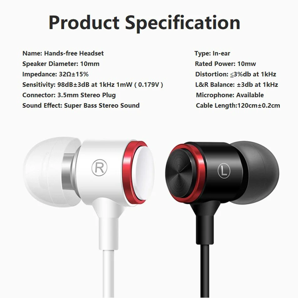Наушники 3,5 мм с проводным управлением, проводные наушники, стерео басы в ухо, металлическая Спортивная Музыкальная гарнитура с микрофоном, HiFi, Tws, игровая гарнитура, Handfree