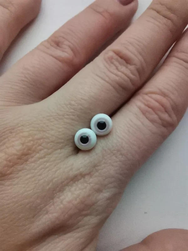 Зелёные ооочень темные. Камера телефона даже уловить этот зелёный не смогла. Зрачков практически не видно, за это минус звезда. Радужка в кукле будет скорее всего чёрная. Линза выпмрает в меру. Размер 0,6, мне такой и нужен. Применение глазам найду.