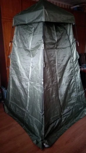 отправка в течении 7 дней(товар отправили на 7день), доставка курьером. Заявленные размеры 120*120*220 см, при замере рулеткой получилось 130*130*200 см. Может от того, что тент был не закреплён, размеры немного не соответствуют. Внутри ткань светлая, есть кармашек, крючок для душа, стропа для полотенца. В верхней части вентиляция. Окна нет. Комплектация на фото. Для своих функций пойдет.