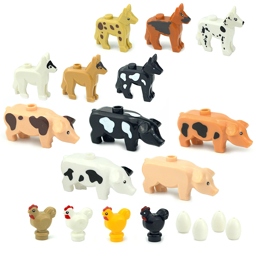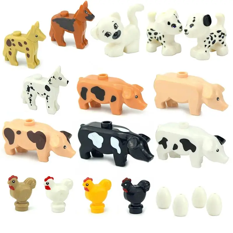 Строительные блоки MOC для животных, фермы, курица, свинка, собаки,...