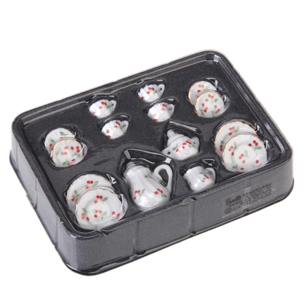 Миниатюрная фарфоровая тарелка для кукольного домика, 15 шт., посуда набор для чая тарелка, красная вишня