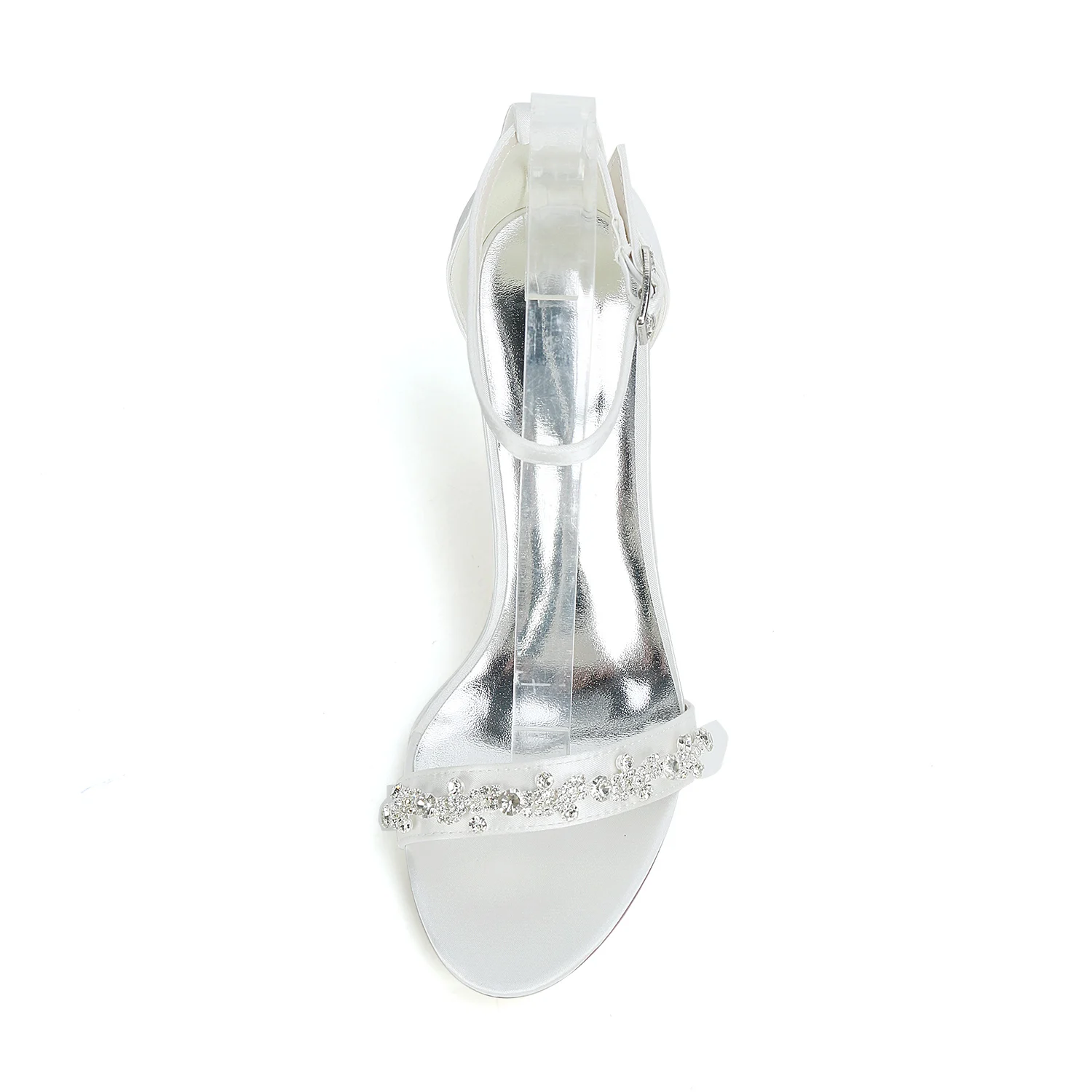 Женские атласные вечерние босоножки, 3 дюйма, ремешок на щиколотке и высоком каблуке с кристальной отделкой для свадебной вечеринки