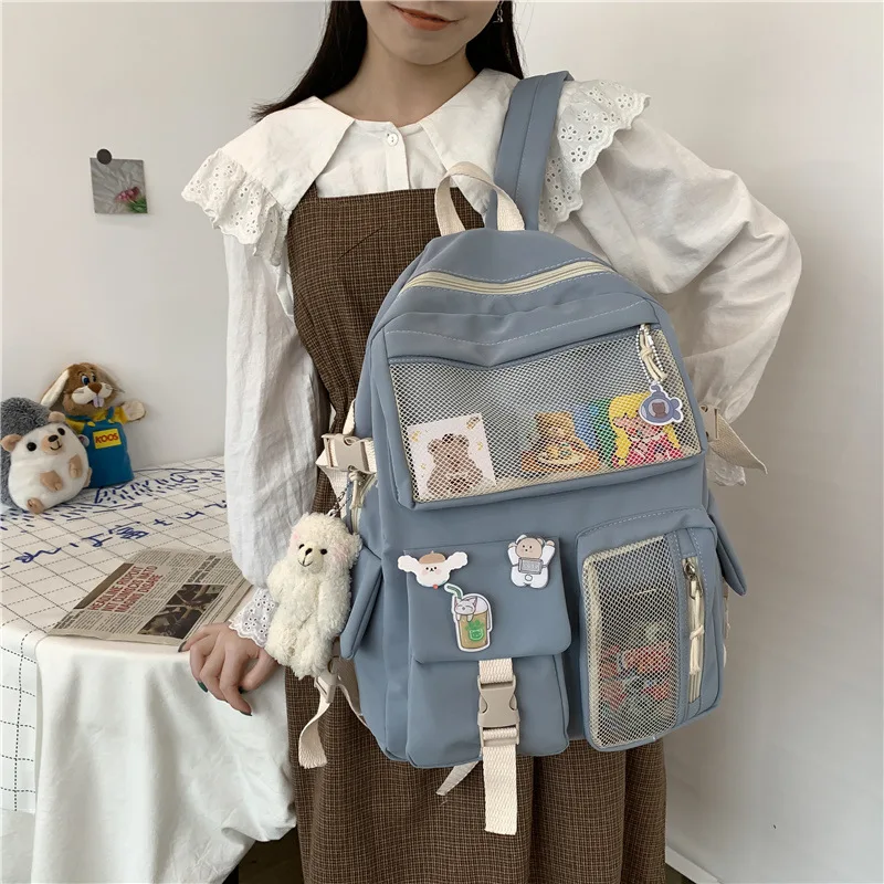 Рюкзак для девочек-подростков, новинка, женский рюкзак с пряжкой и значком, Модный милый школьный ранец карамельных цветов, сумка на плечо для студентов