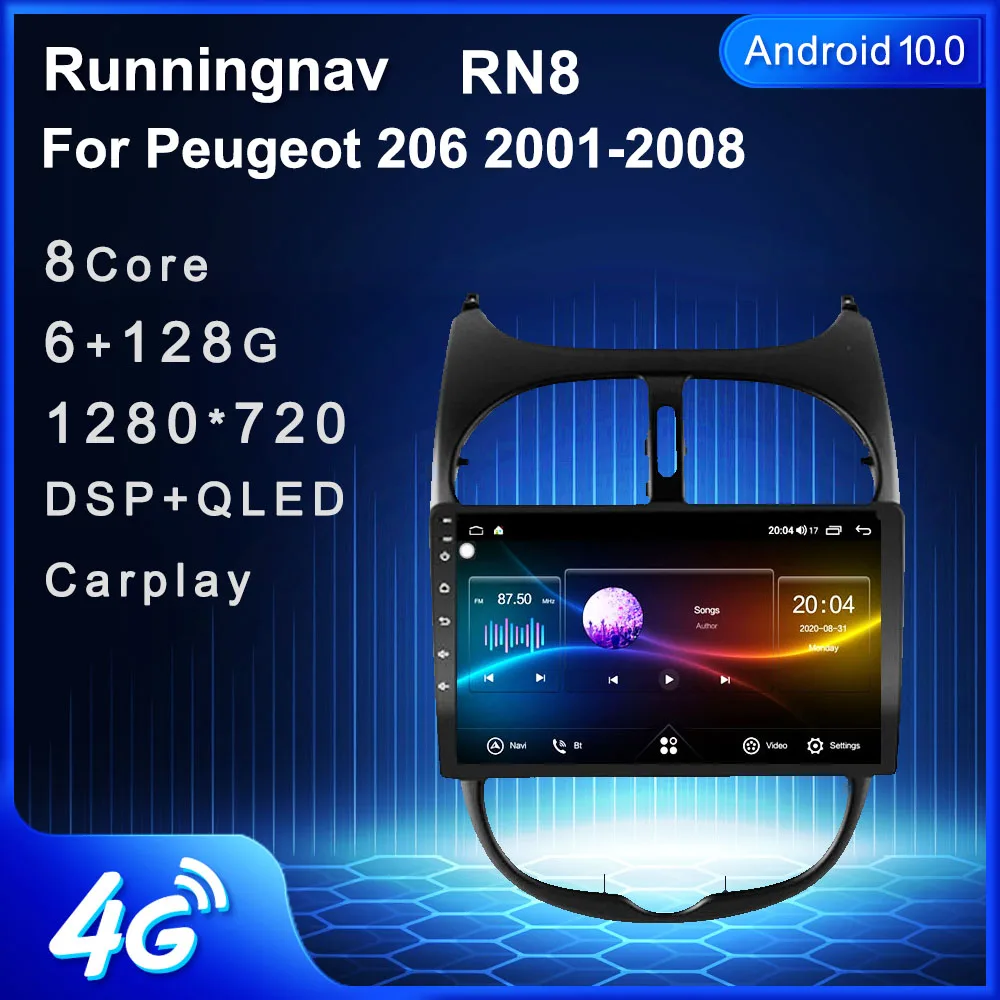 Runningnav для Peugeot 206 2001-2008 Android автомобильное радио, мультимедийный видеоплеер, навигация GPS