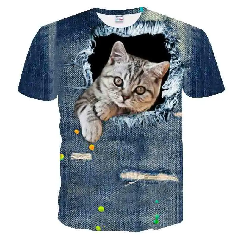 Футболка для мужчин и женщин с 3D рисунком кота, супермилая рубашка с круглым вырезом, ультратонкая дышащая футболка, повседневный Топ для женщин, на лето