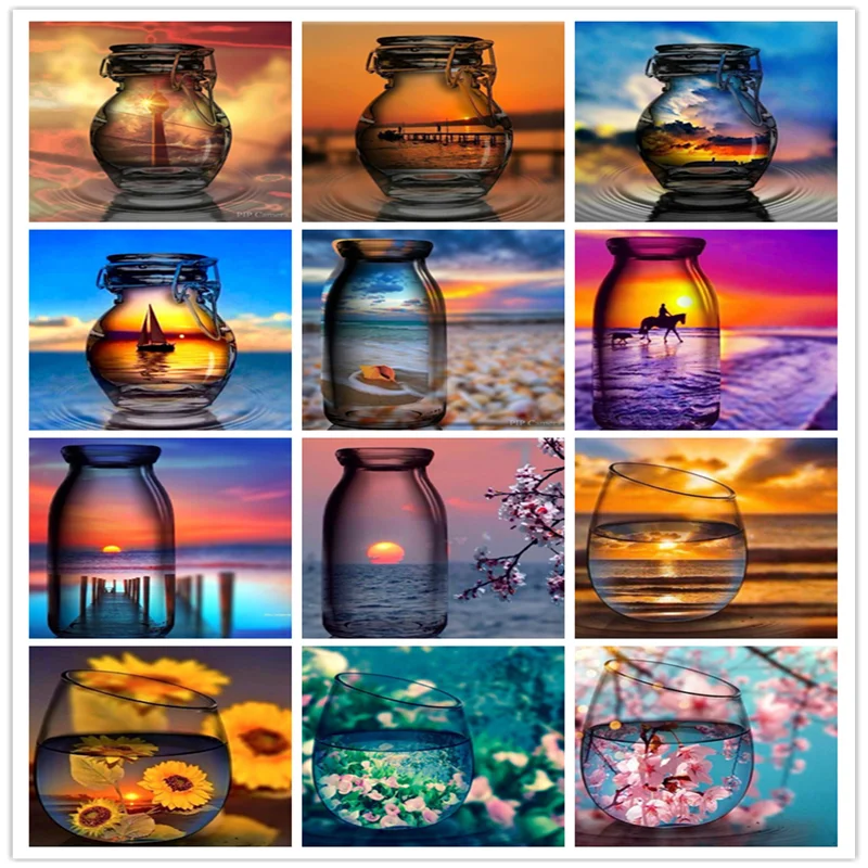 Квадратная и круглая Алмазная мозаика, вышивка крестиком, алмазная живопись, стеклянные бутылки, отражающая обстановка, солнце, пейзаж, домашняя декоративная живопись