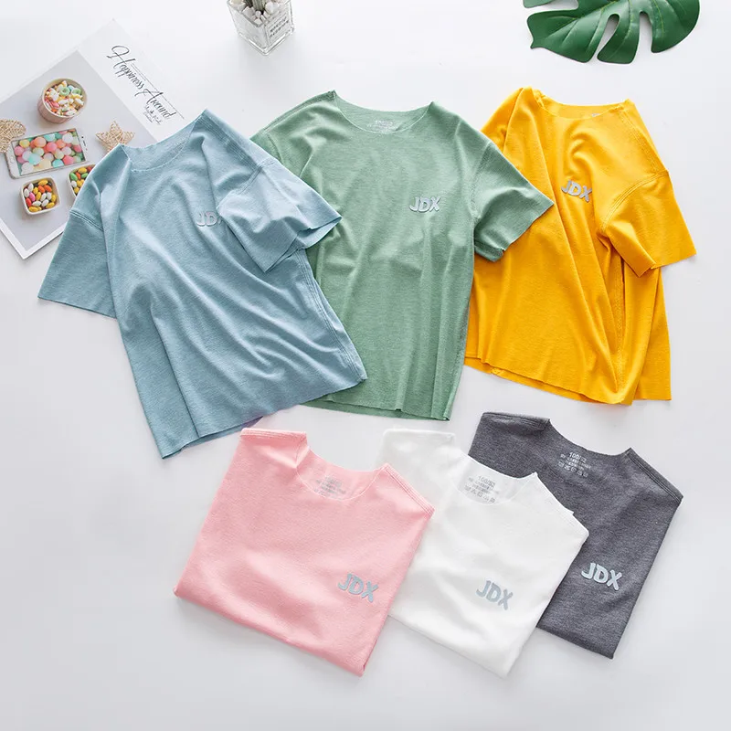 Летние топы для мальчиков и девочек; Милая детская одежда; Бесшовный модальный топ с короткими рукавами; Гладкие базовые футболки