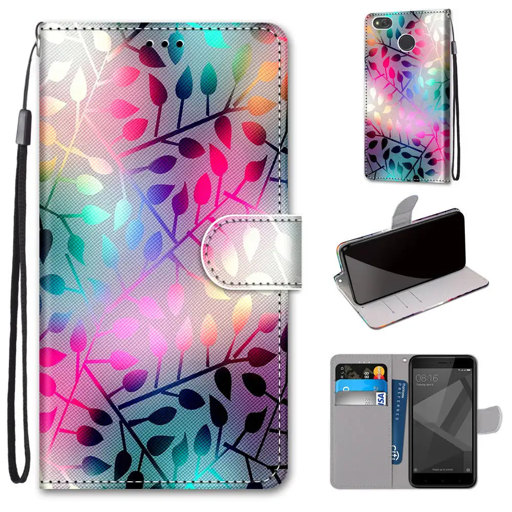 Кожаный флип-чехол для телефона случай для Redmi Примечание 4 4X 3S GO 4A цветок милый кот окрашенный Кошелек держатель для Карт Подставка чехол-книжка бабочка