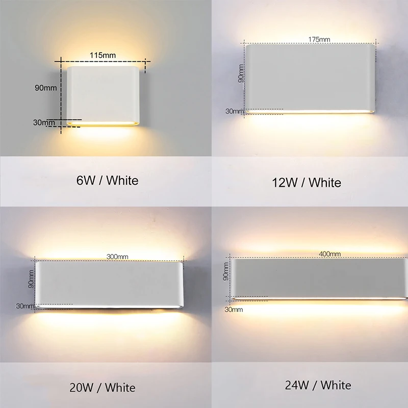 Светодиодная уличная настенная лампа, водонепроницаемый алюминиевый настенный светильник для крыльца, сада, настенное бра для коридора, комнасветильник щения, 6 Вт, 12 Вт, 20 Вт, 30 Вт