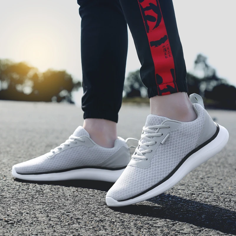 Летняя мужская обувь из сетчатого материала легкие кроссовки для мужчин модные повседневные кроссовки на шнуровке; Дышащая мужская легкая спортивная обувь; Zapatillas Hombre серый