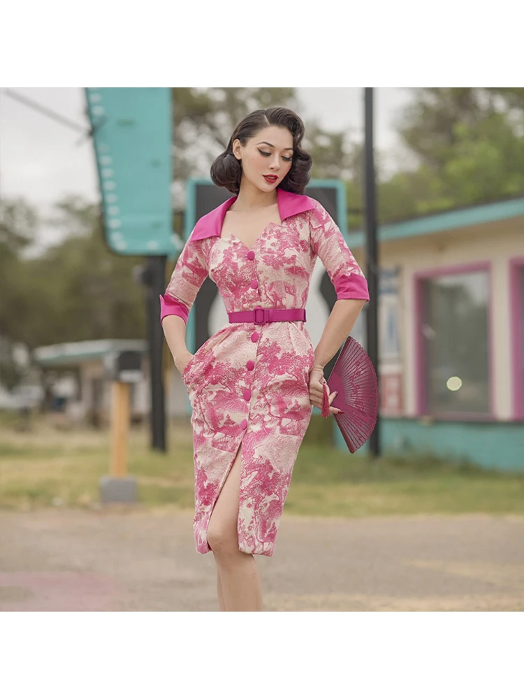 Le Palais винтажные 2021 Весенние новые оригинальные розовые элегантные женские платья с коротким рукавом и высоким разрезом в стиле дворца