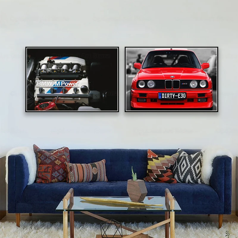Ретро-коллекция BMW Power M3 E30, супергоночный автомобиль, картина, постер, Настенная картина, принты на холсте, декор для гостиной, дома