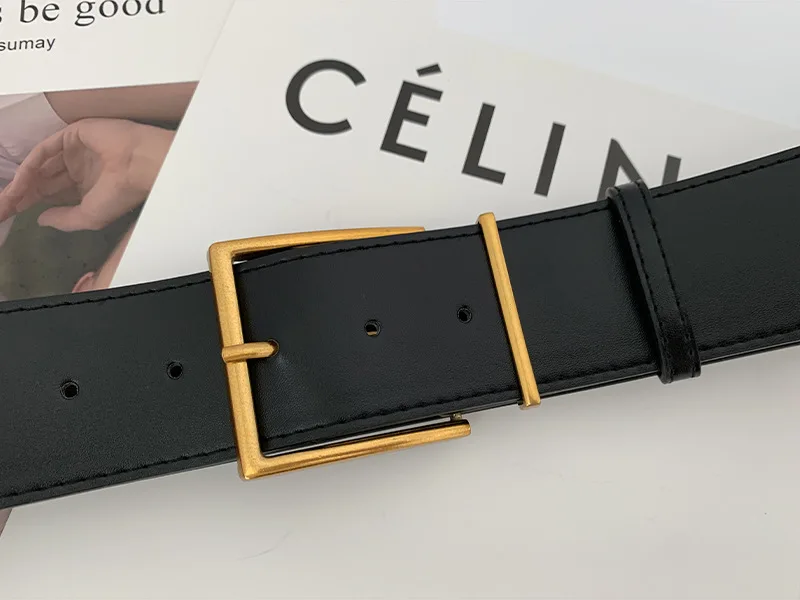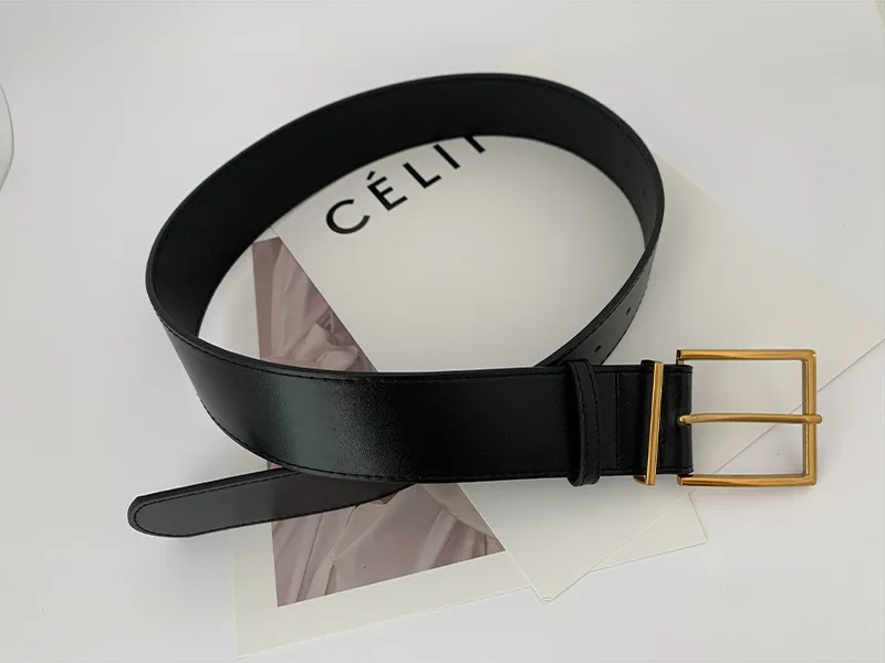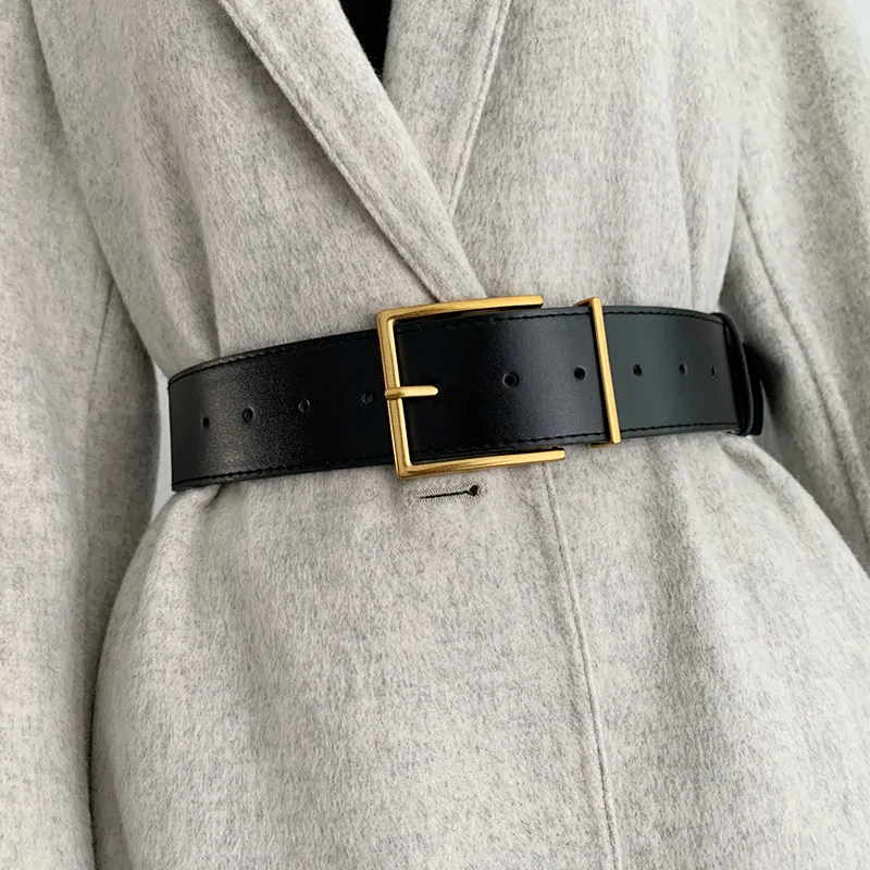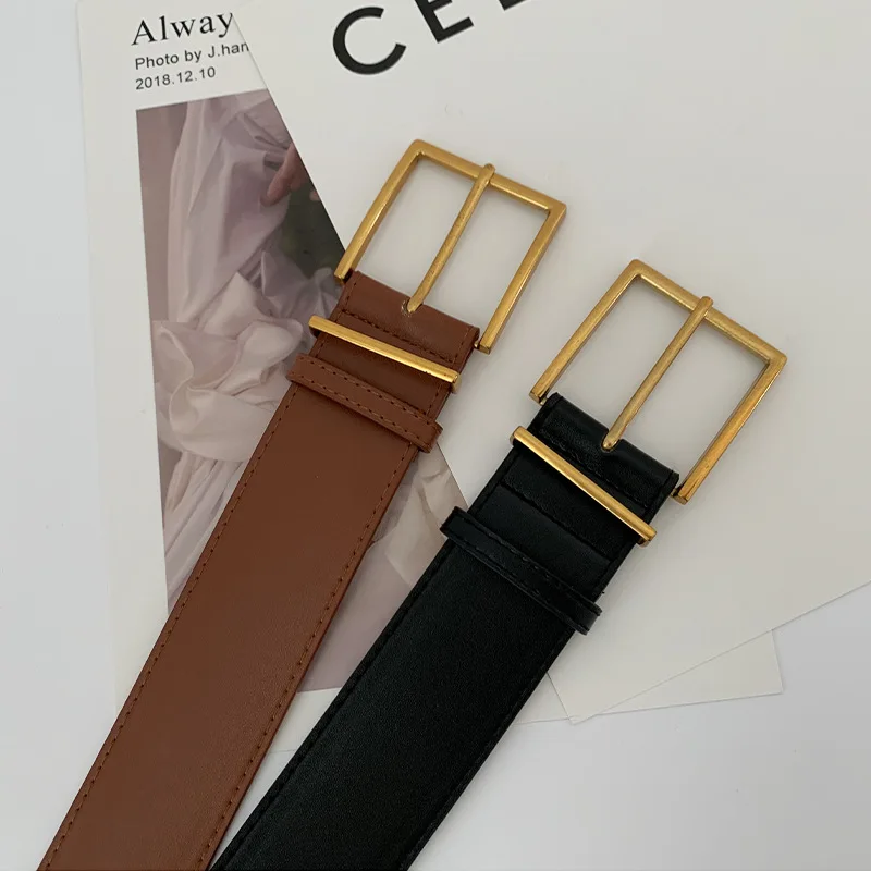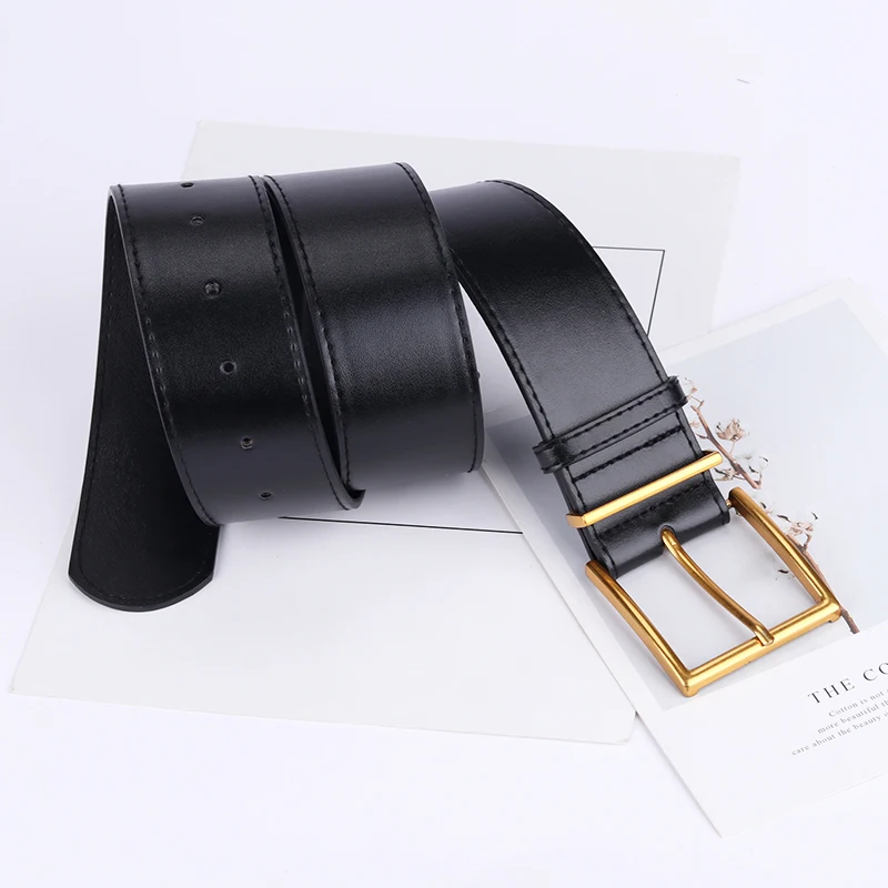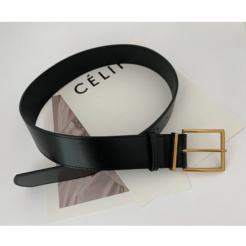 Ремень женский широкий, из искусственной кожи, с квадратной металлической пряжкой золотистого цвета, 2021