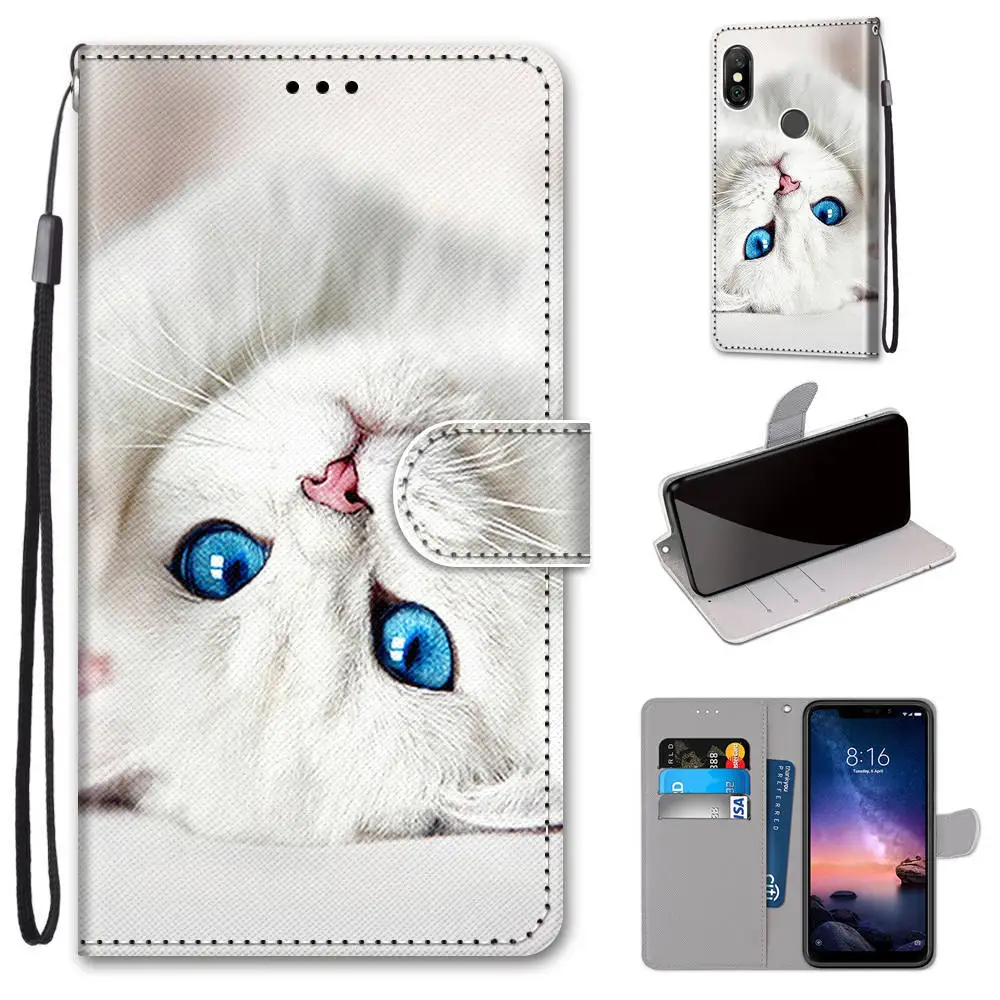 Кожаный флип-чехол для телефона Redmi Note 6 6A Pro Note6, милый цветочный кошелек с рисунком кота, держатель для карт, чехол-книжка с подставкой и бабочками