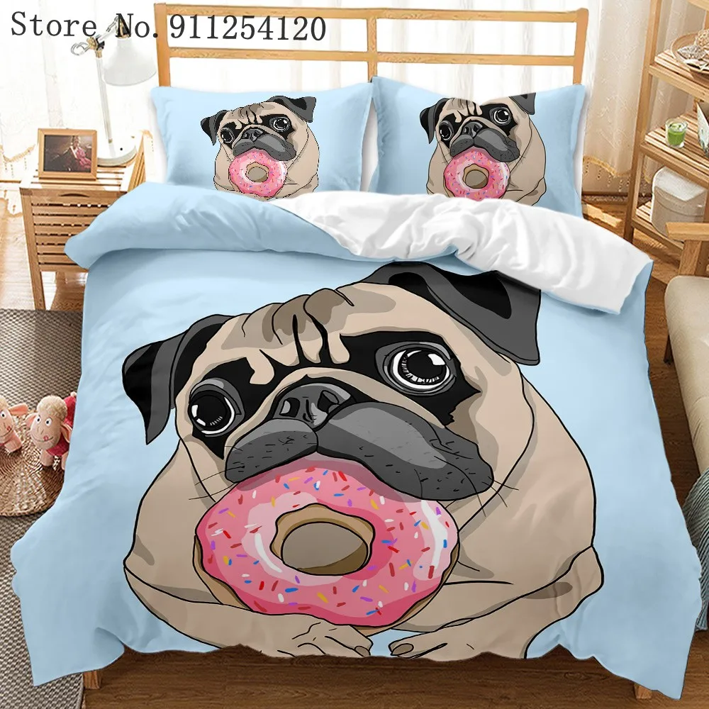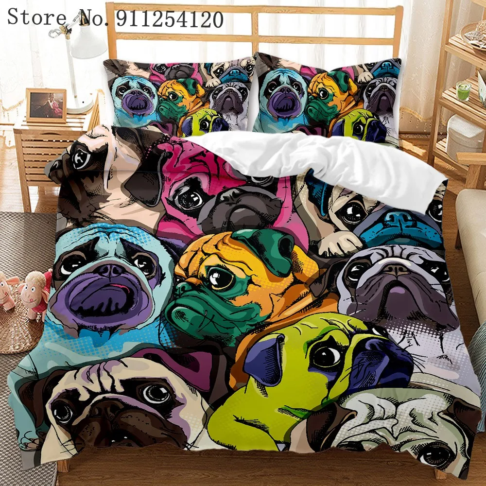 Набор постельных принадлежностей для собак с рисунком мопса, стеганое одеяло, Одноместный двуспальный Королевский размер, Комплект постельного белья, 2/3 шт., набор пододеяльников с изображением животных