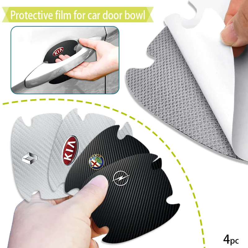 4 шт. наклейка на дверную ручку автомобиля, защитная пленка из угле...