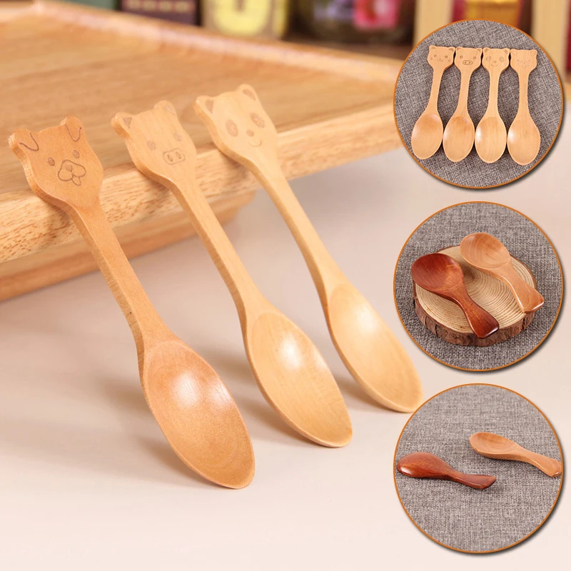 Деревянная ложка с мультяшным котом, Бамбуковая кухонная утварь, китайская столовая ложка для супа, креативная посуда для кухни и ресторана