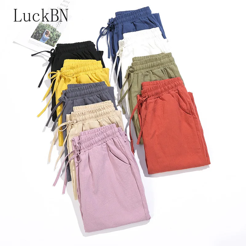 Брюки женские хлопковые повседневные, свободные штаны-султанки до щиколотки, однотонные штаны для отдыха в Корейском стиле, лето 2021