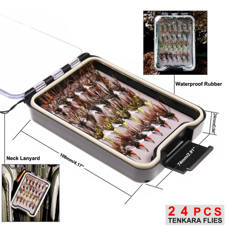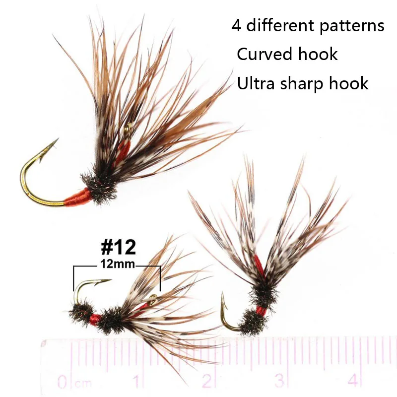 24 шт.корт. 12 # смешанные Тенкара сухие мухи, Мушки для ловли окуня, форели, приманка для рыбалки