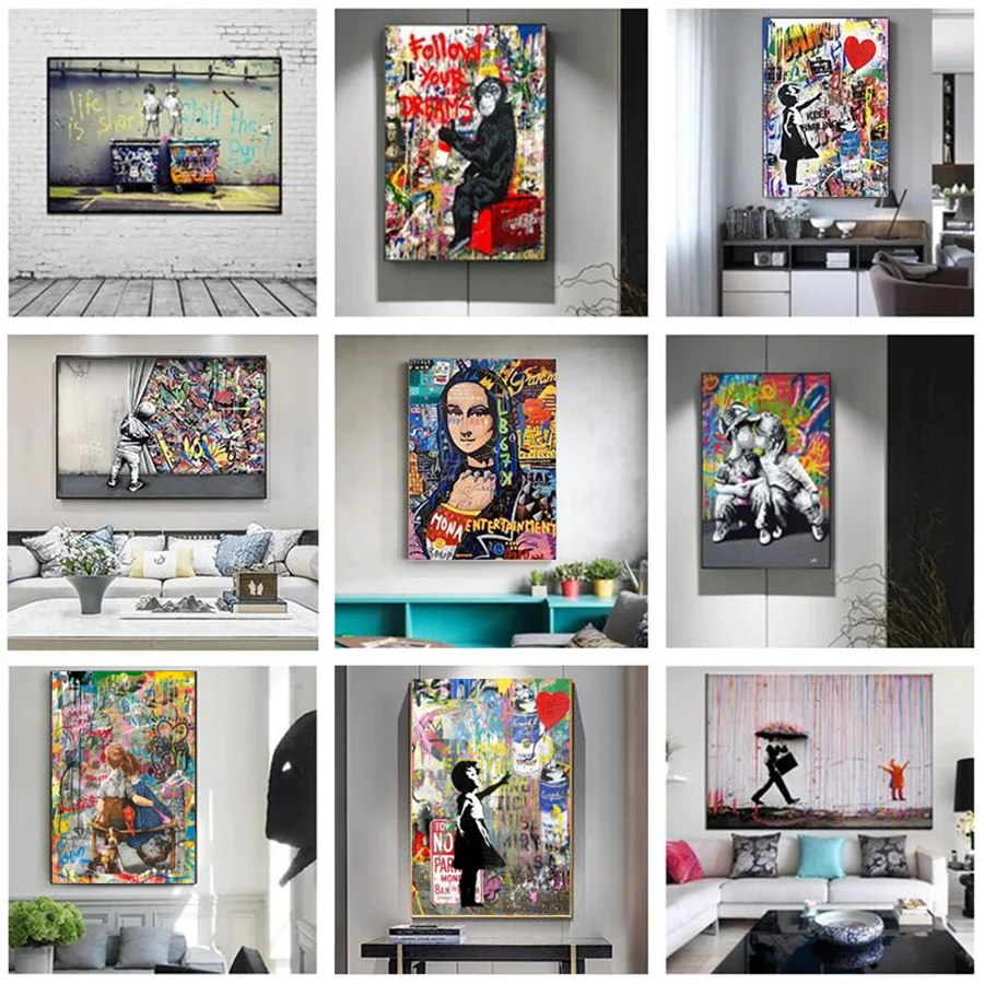 5D сделай сам, алмазная живопись, граффити Бэнкси, искусство, Мона Лиза, полностью квадратные, круглые, Алмазная мозаика для двух мальчиков, вышивка, украшение