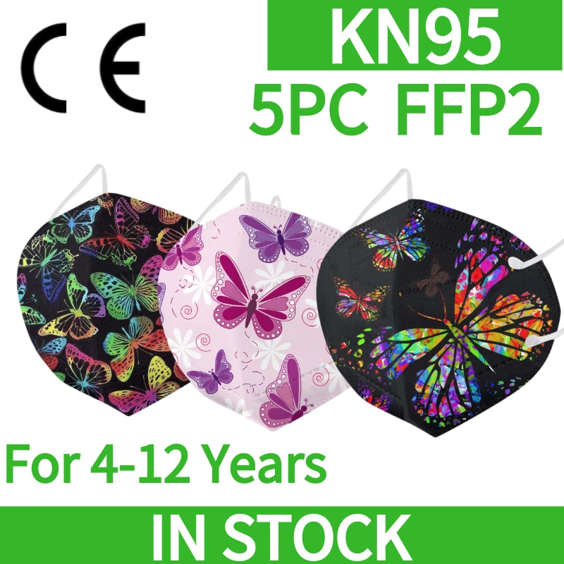 Детская маска ffp2 с принтом бабочки, многоразовая маска Kn95, FFP2, fpp2
