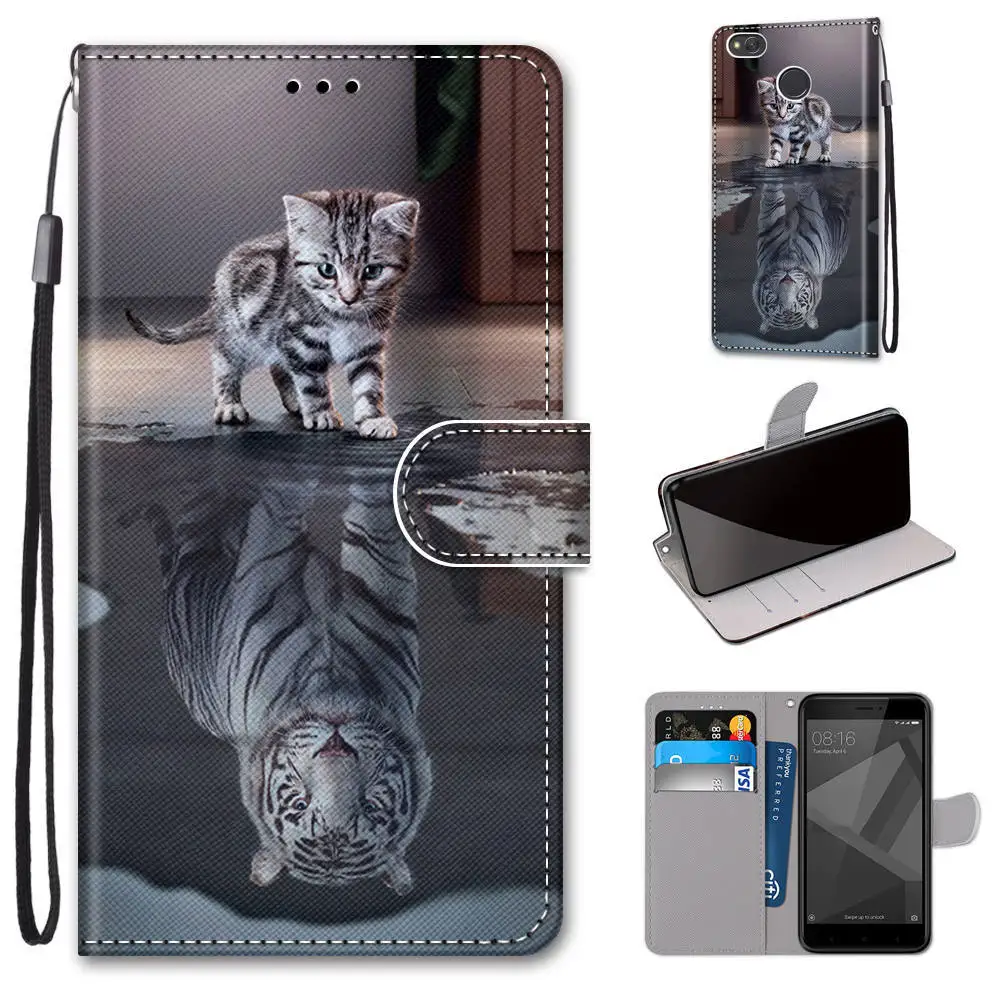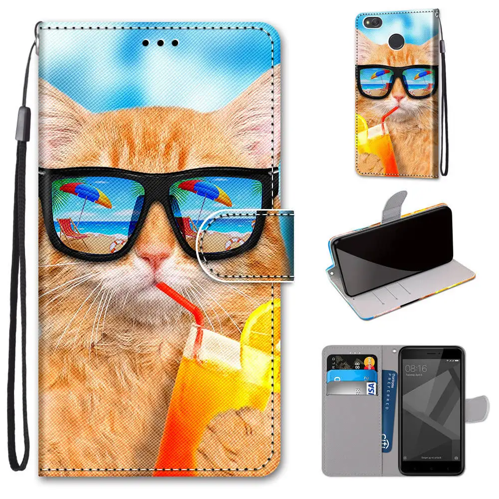 Кожаный флип-чехол для телефона Redmi Note 5 5A Pro Plus, чехол-бумажник с цветочным рисунком милого кота, держатель для карт, подставка, чехол-книжка с бабочками