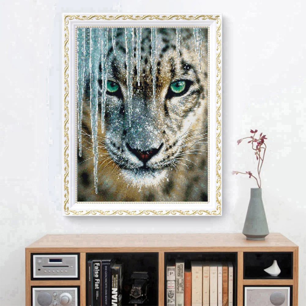 Алмазная живопись, полноразмерная, круглая, леопардовая, снежная, многосоставная вышивка, украшение для дома, мозаика, креативное искусство
