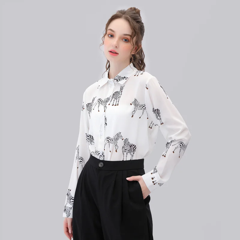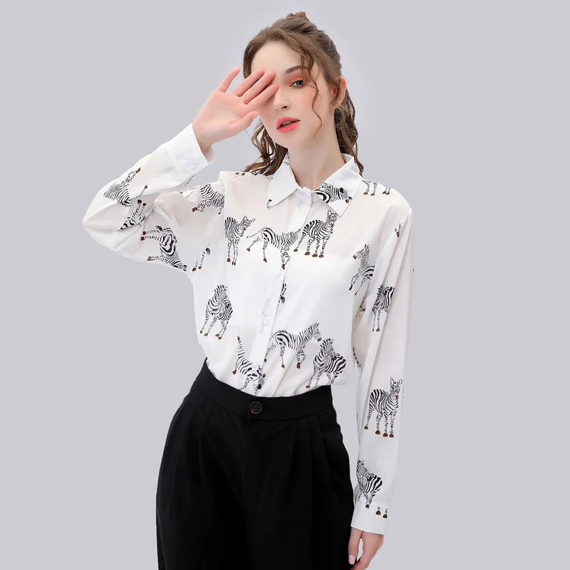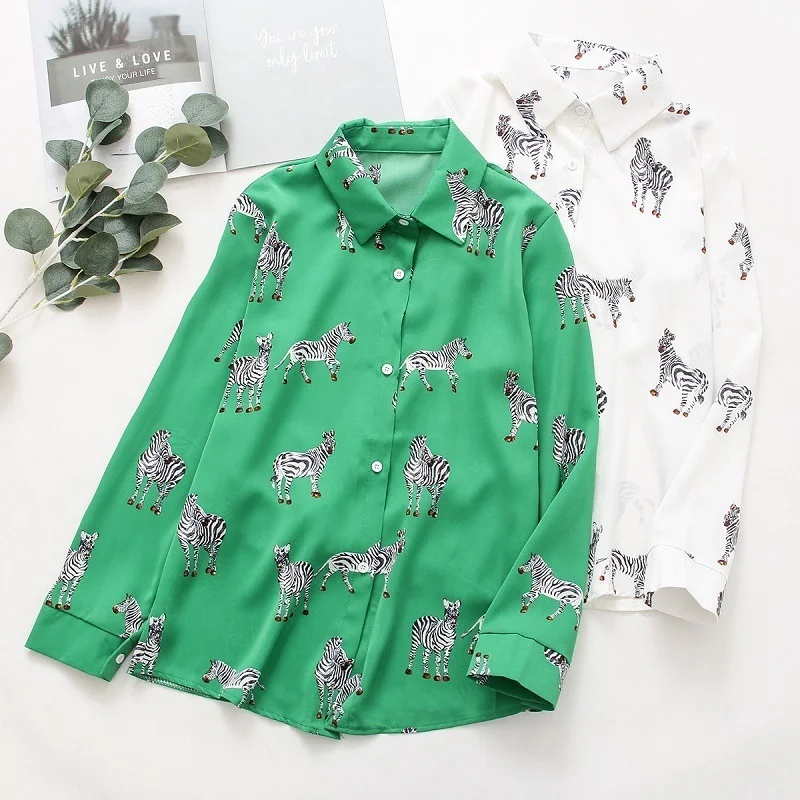 Блузка QWEEK Женская атласная с принтом зебры, шелковая винтажная офисная рубашка с длинным рукавом, модная зеленая Элегантная блузка, 2021