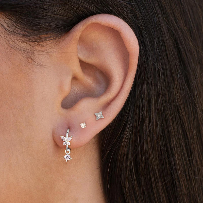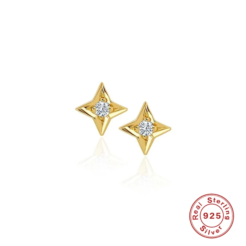 Серьги-гвоздики из стерлингового серебра 925 пробы с четырьмя острыми звездами для женщин, кубический цирконий, бриллианты, крошечная звезда, хрящи, ювелирные изделия