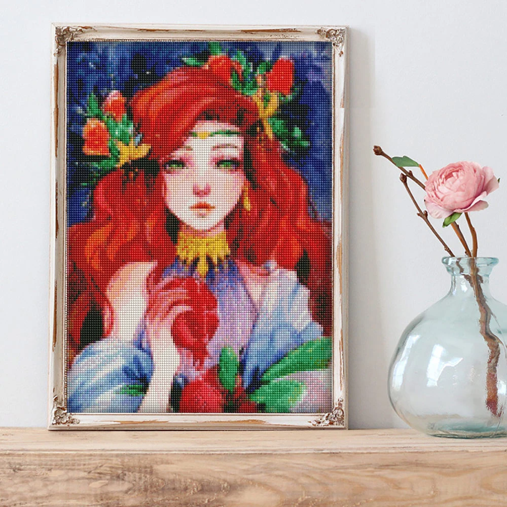 Картина из страз 5D мультяшная красивая девушка, цветок, Сказочная ...