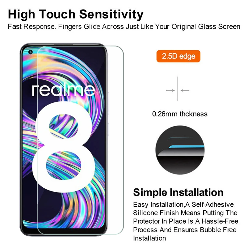 2-1 шт. высококачественное стекло для Realme 8 RMX3085 Защитная пленка для экрана телефона на Realme8 взрывозащищенное Закаленное стекло