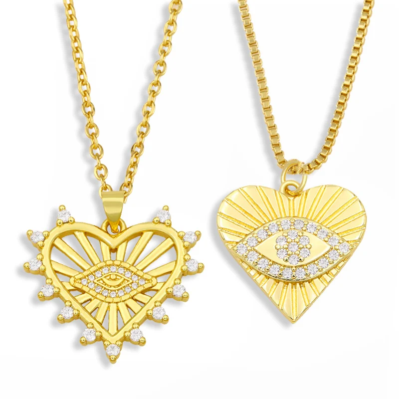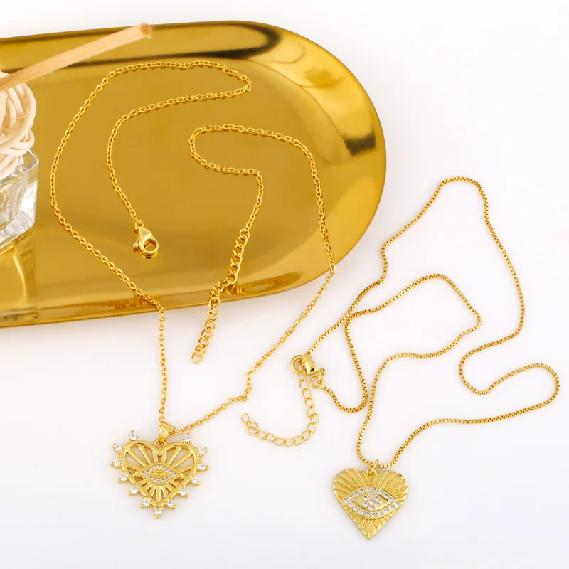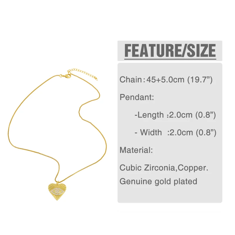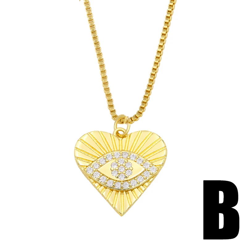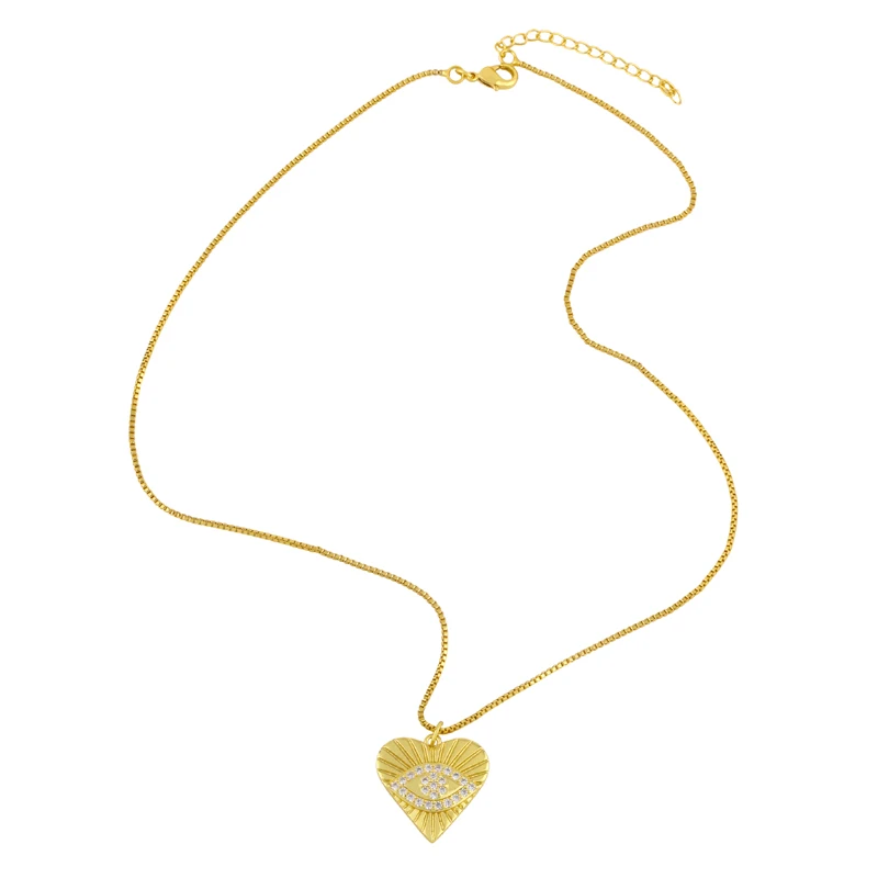 Ожерелье FLOLA Gold Vermeil сглаза для женщин, сердце, турецкий глаз, кулон, ожерелье, CZ цирконий, ювелирные изделия, День Святого Валентина, подарок nkeu42