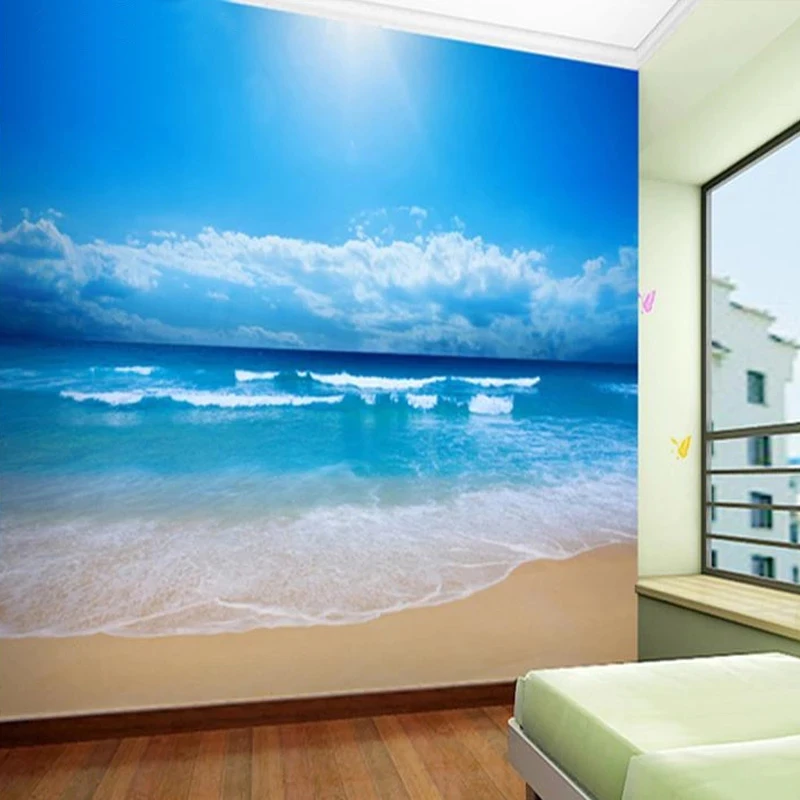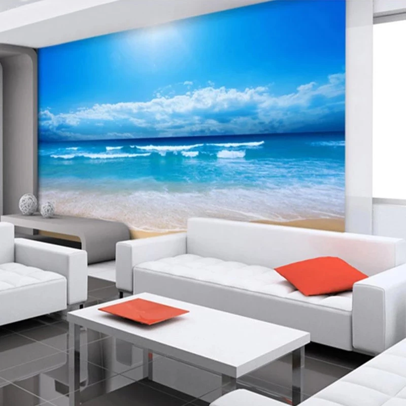 Фотообои на заказ, самоклеящиеся, водостойкие, с 3D принтом голубого неба, океана, пляжа